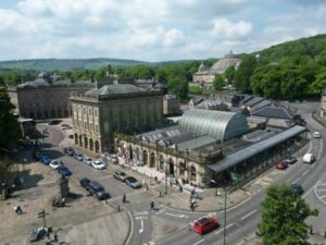- Affluent spa town and major Peak District tourist hub