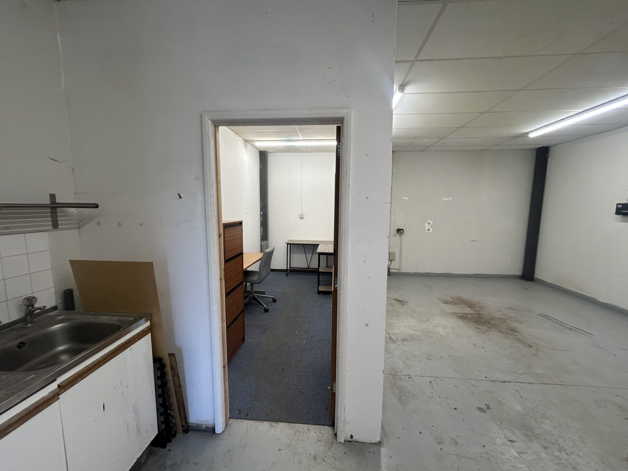 • Open-plan workspace, Partitioned office with kitchen point and separate WC